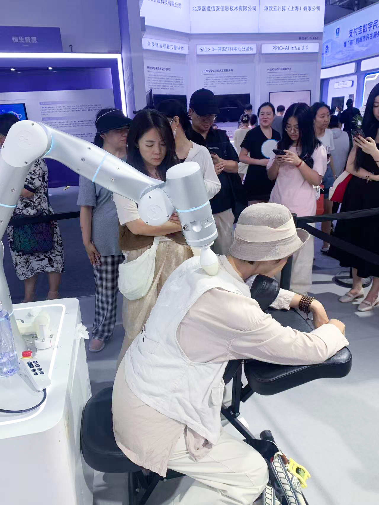 在外滩大会的展区,非夕更是围绕仿人化,带来了两项极具代表性的应用:蛋雕演示、机器人按摩&数采演示。