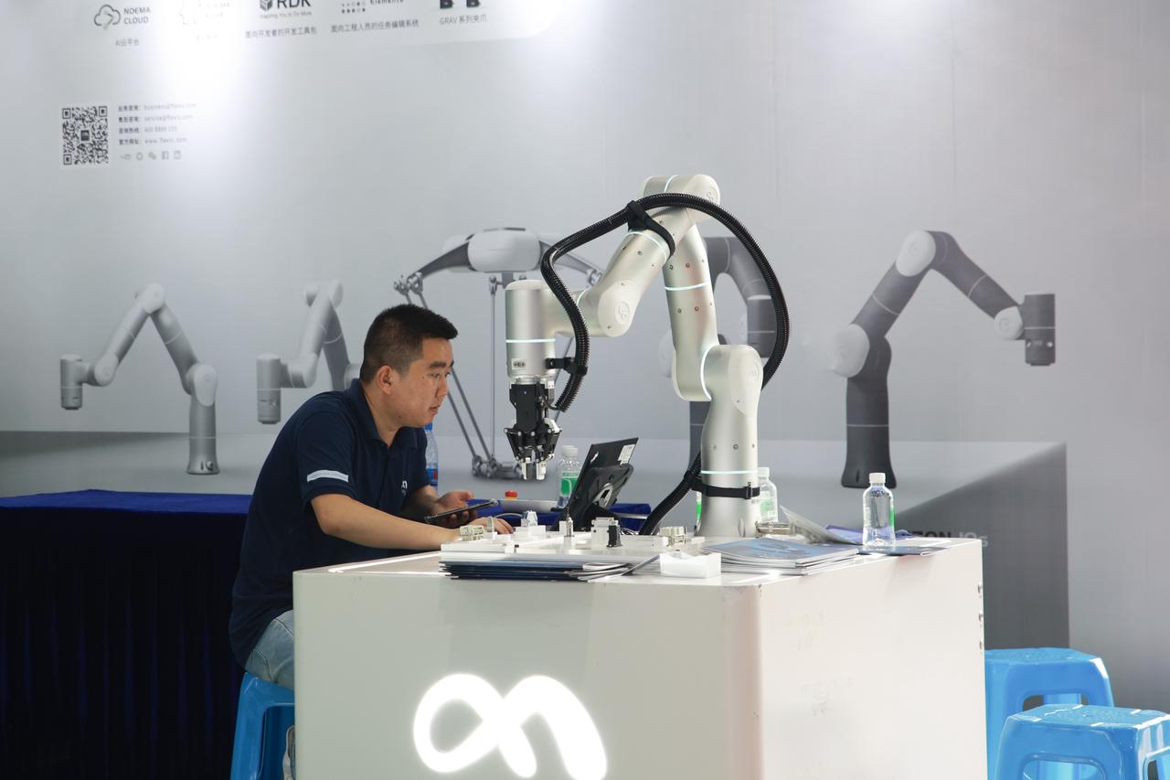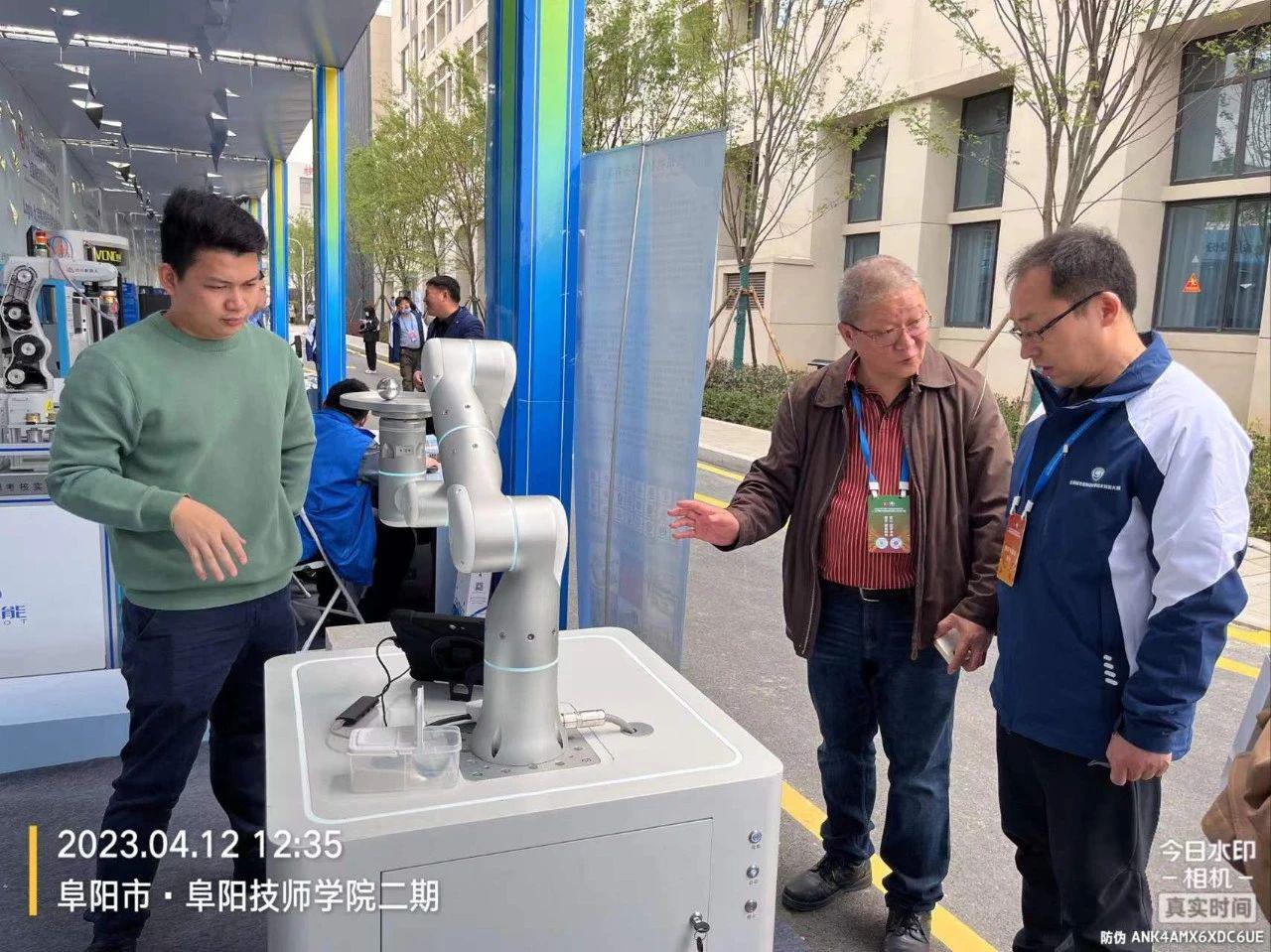 在全国服务型制造应用技术技能大赛上,非夕与合作伙伴华樾智能联合赞助本次大赛第五项供应链管理平台,提供设备与技术服务支持,成功助力赛事圆满完成。在企业展厅,华樾联合非夕开发的赛项五平台中移动复合机器人单元受到众多关注,到场观众与华樾专家团队进行了开放、热情的交流。