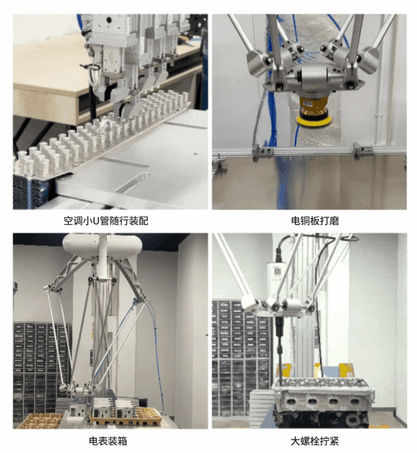 玄晖专为自由度要求相对较低、但力控需求高的应用场景而设计,能够在许多细分领域的自动化中扮演“专家”角色。目前,玄晖已在多个行业与场景中实现成熟落地应用,如空调小U管随行装配、鱼排高速整形、蔬菜柔性移栽、发动机杠螺栓拧紧、电铜板打磨、单相表/洗衣液装箱,为客户带来高效、精准、可靠的智能化解决方案。