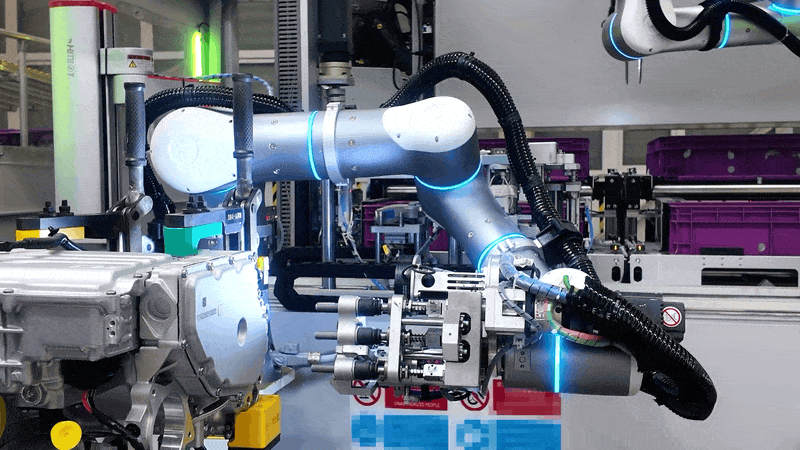 通过切换工具,Rizon 10能够流畅地接连进行左右悬置的预拧紧作业。在拧紧过程中,机器人会自主跟随实时距离的变化,并根据孔位和角度进行实时的垂直调整,避免卡顿或报警。