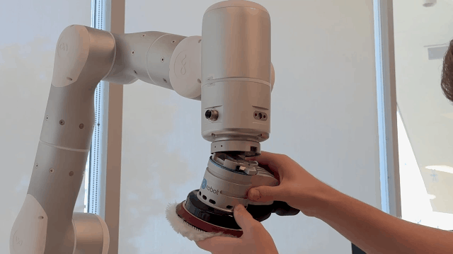 结合 OnRobot 打磨头,非夕的打磨方案可以更高效地使用打磨盘,预估砂纸磨损速度,降低耗材成本。此外,Rizon本身的高精度力感应能力无需额外配备昂贵的力传感器,进一步降低了系统成本。