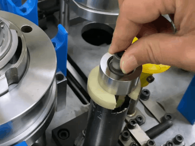 Rizon拂晓采用精细的力控搜孔策略,自主适应来料曲轴的中心位置变化和工序累积误差,并通过模拟人手动作的柔性按压,有效抵抗装配带来的晃动干扰,使轴套成功完成紧配合。该项目装配成功率接近100%,节拍5.1-5.6s。