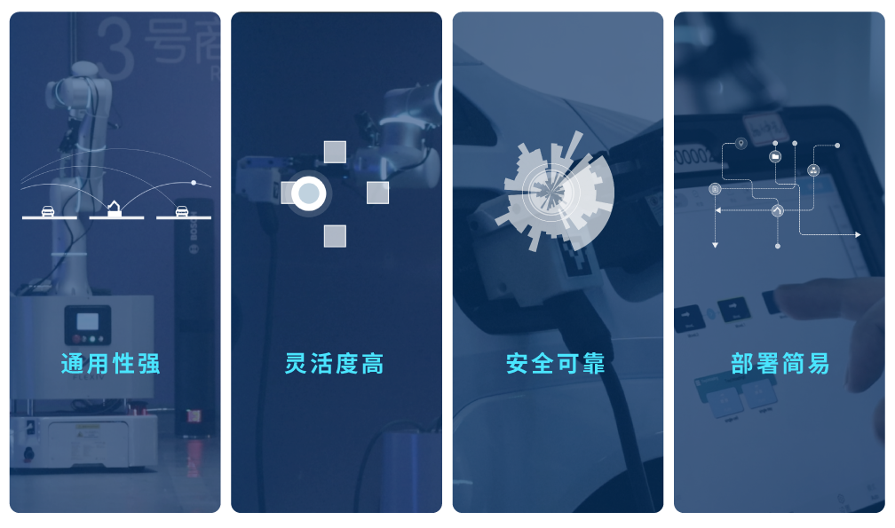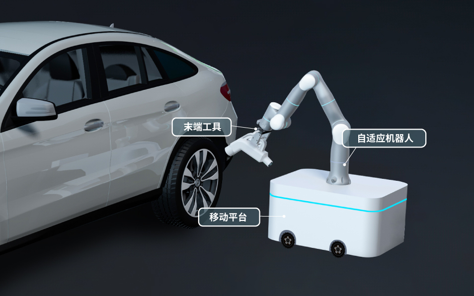 依靠自身力控特性,搭配高环境适应性的AI视觉算法,自适应机器人可通过力控搜孔、柔性装配等策略,极大程度容忍由可移动平台、周围环境等带来的系统误差。