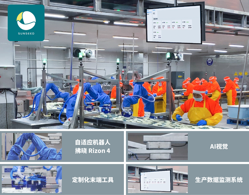 由希夕智能打造的自适应机器人鱼排随线整形工作站由自适应机器人拂晓Rizon 4、先进的AI视觉、定制化末端工具和鱼排整形数据监测系统组成。