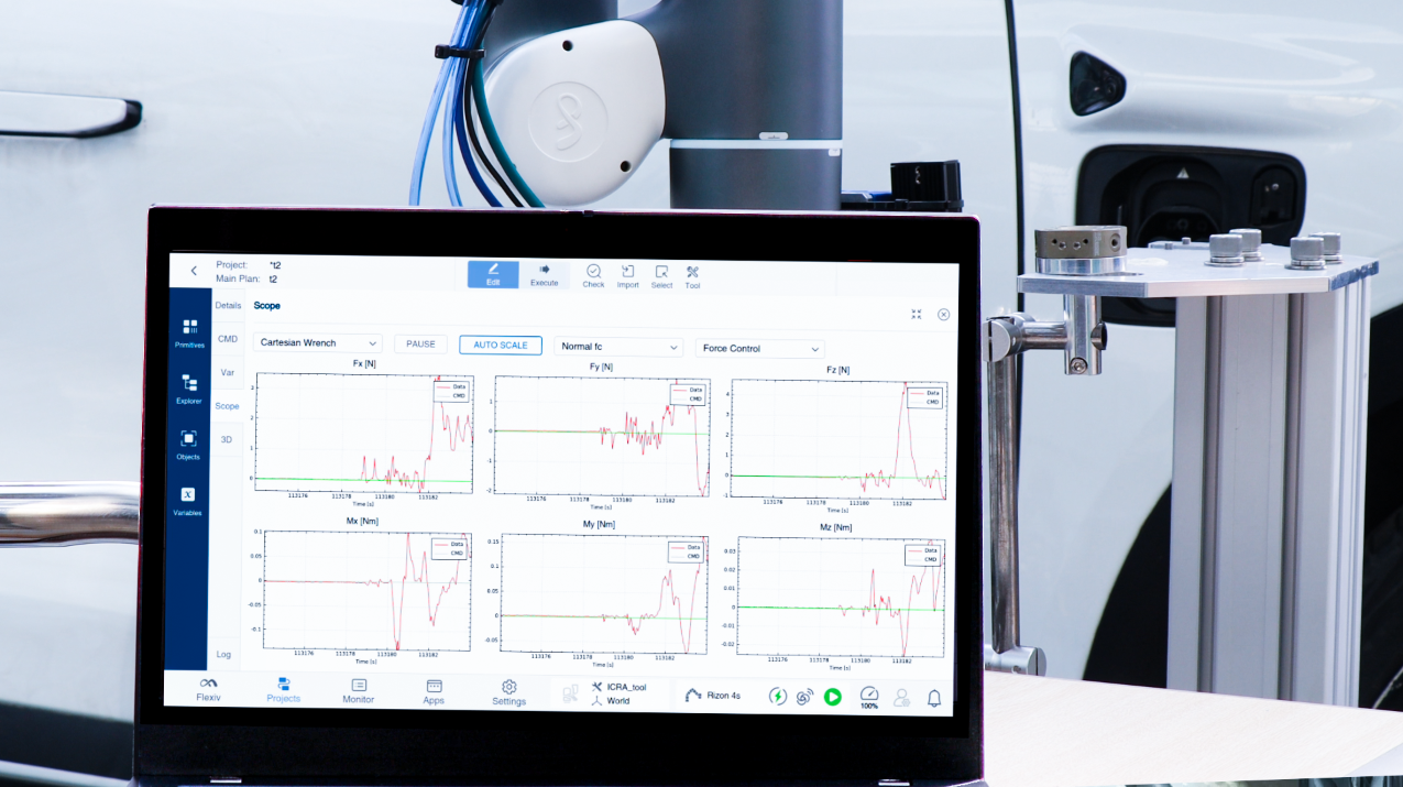依靠先进的力控能力和视觉算法,该方案既避免了在充电枪插拔时由于操作不当对充电口造成损耗,也解决人工目视检测可能遗漏的问题。