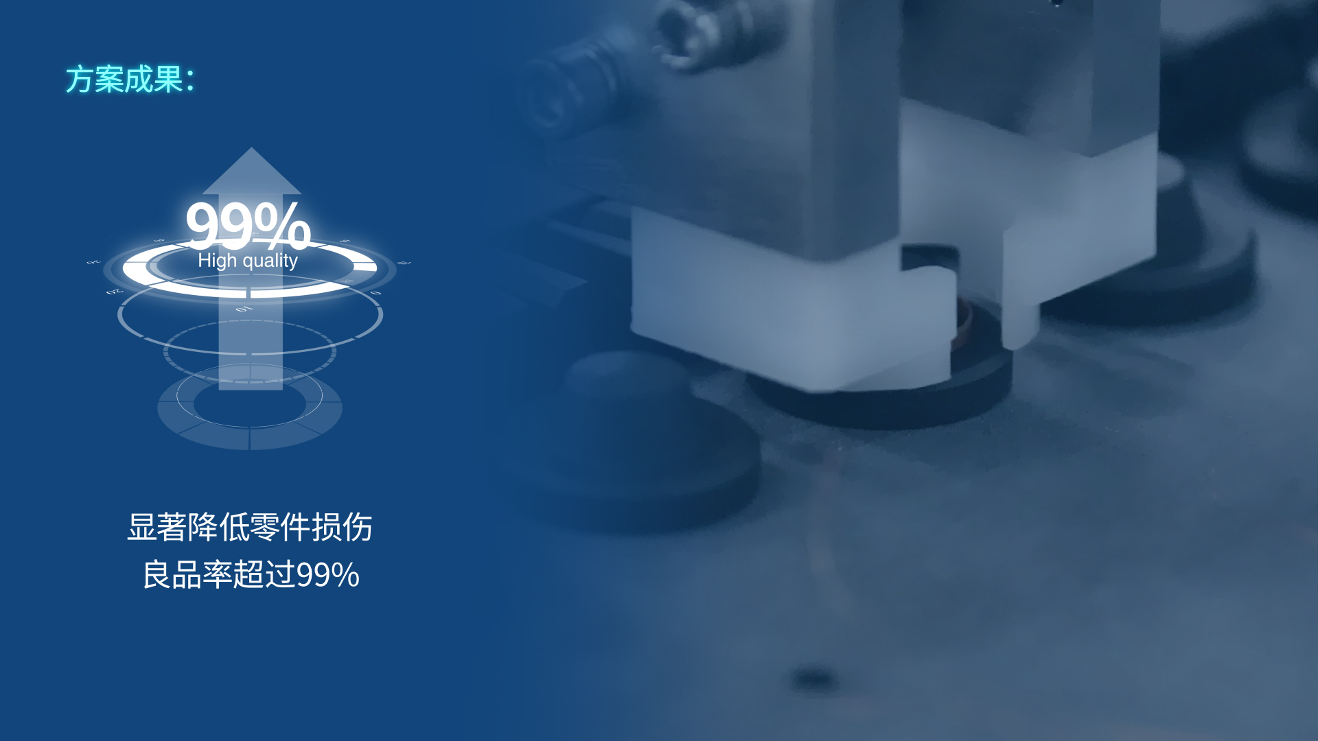 质量提升: 良品率超过99%,安装准确度和精密度均优于人工,角度偏差低于人工25%。