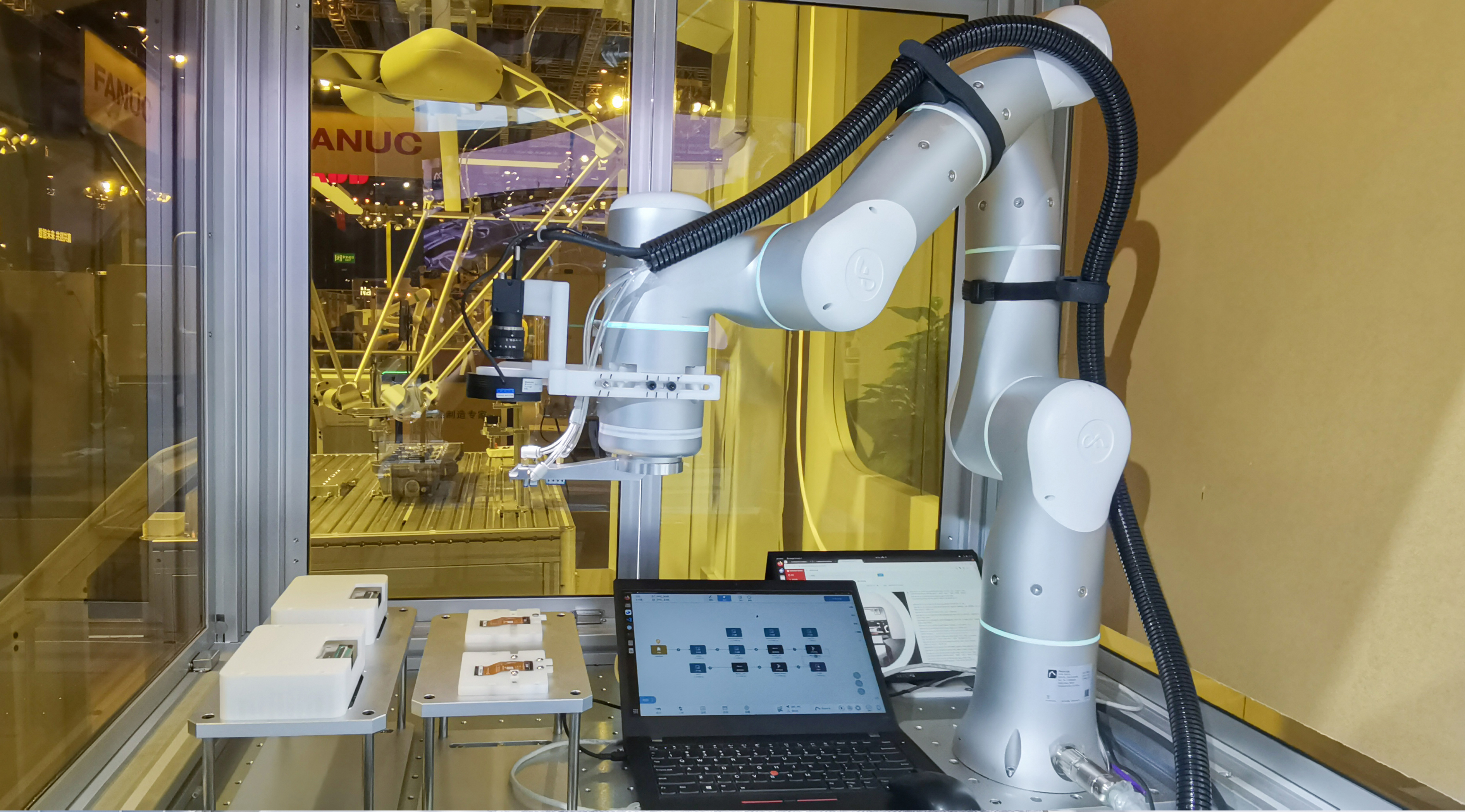 在今年的工博会展台上,非夕还带来了FPC精密插装工作站和服务器综合组装工作站。与之前展出的应用场景略有不同,今年非夕利用自适应机器人先进的力感知和力控技术,能自主完成汽车车载激光雷达内的FPC软排线的柔性插装。