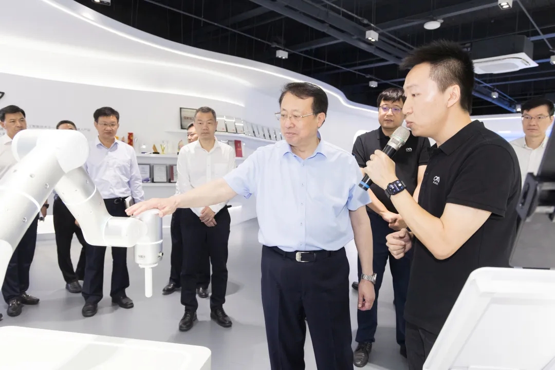 龚正一行查看了非夕自研的机器人关键零部件,观摩了自适应机器人应用展示,并详细了解了非夕的科技研发和应用推广等情况。